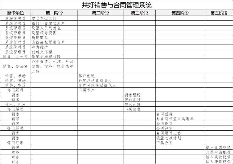 共好合同管理系統包括:客戶維護、銷售跟蹤管理、客戶需求管理、合同管理、流程評審、企業文檔管理、企業即時通訊平臺等模塊組成