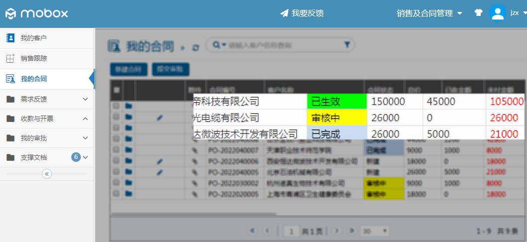 系統提供了,從客戶新建-客戶分配-銷售跟蹤-需求處理-合同新建-合同評審-開票申請-收款經理-開票記錄及收款計劃等操作過程(涉及:市場部、銷售部、財務部等多個部門工作協同)